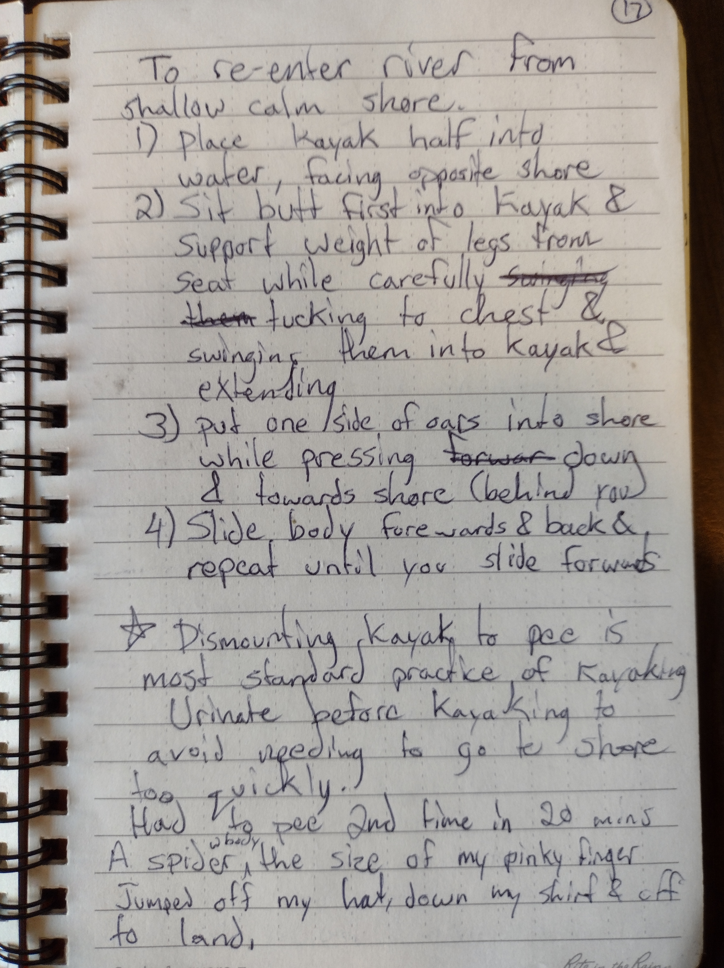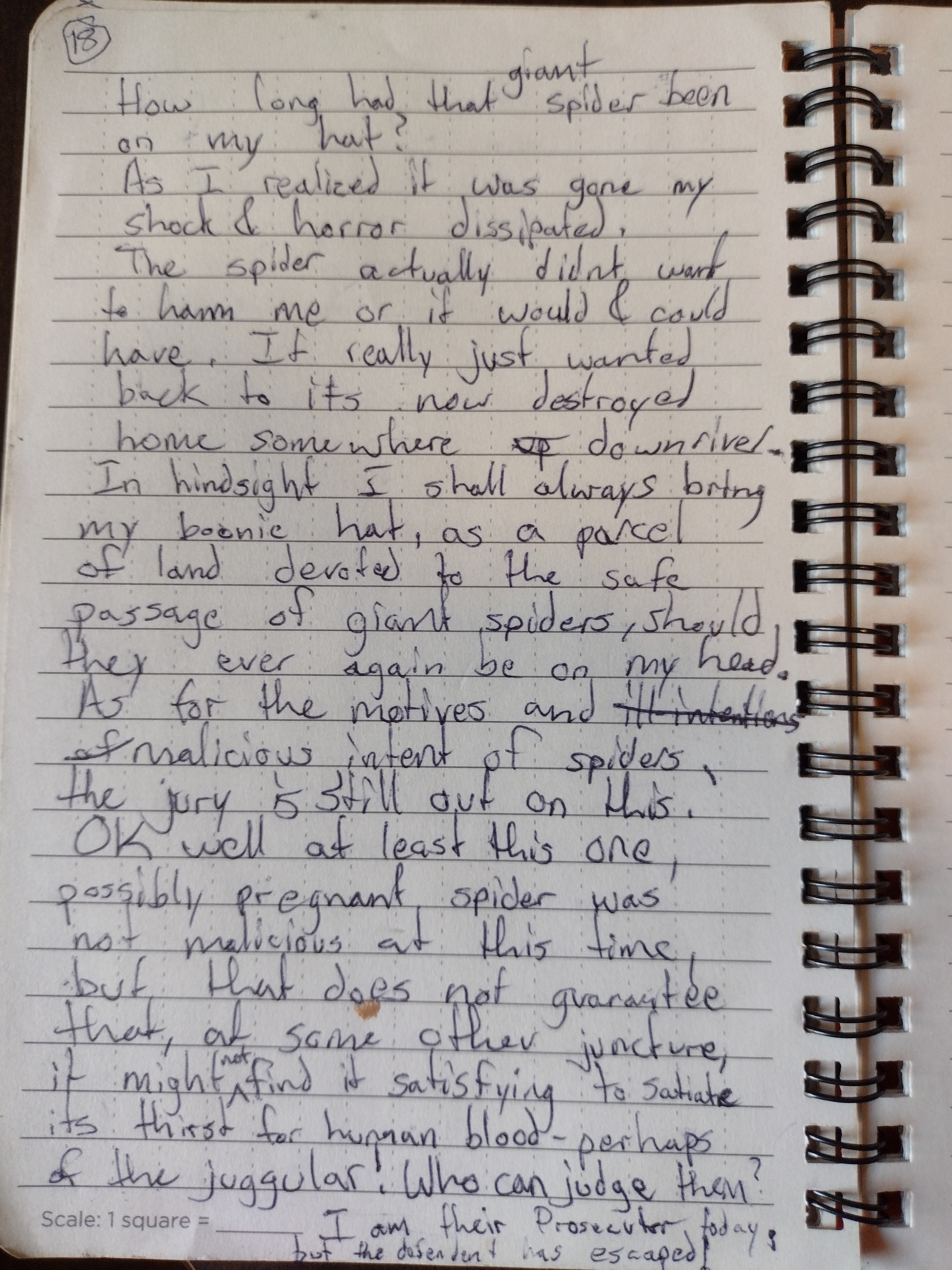 A curious thing happened. I learned after at least a dozen minutes that a giant spider had been riding atop my fisherman’s hat. When I went to shore to urinate, the spider jumped off my hat, rappelled off my arm and disappeared into the bushes. It turned out, the spider wished me no ill will, and likely just wondered how it would get back to its web which my head had passed near to.
