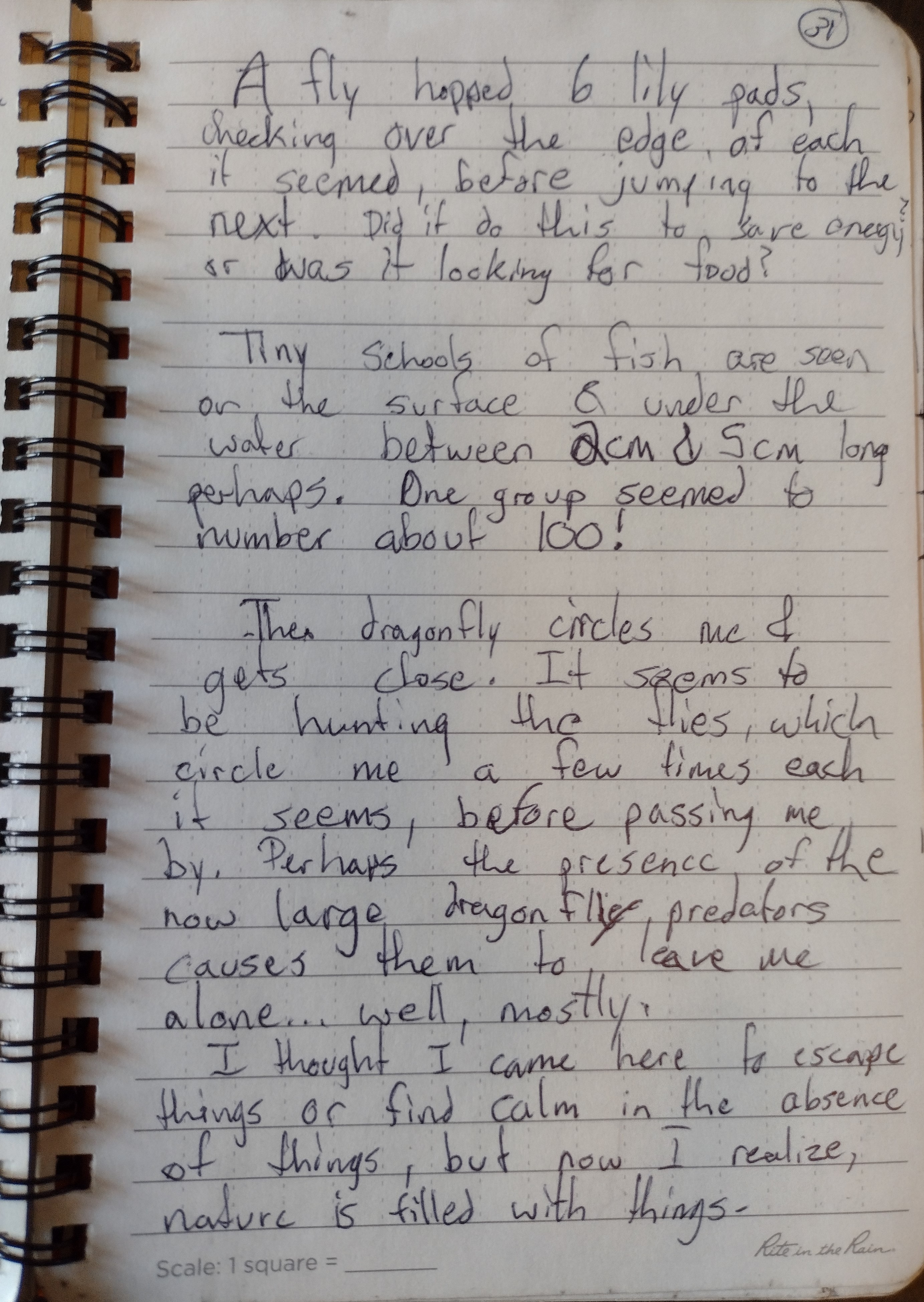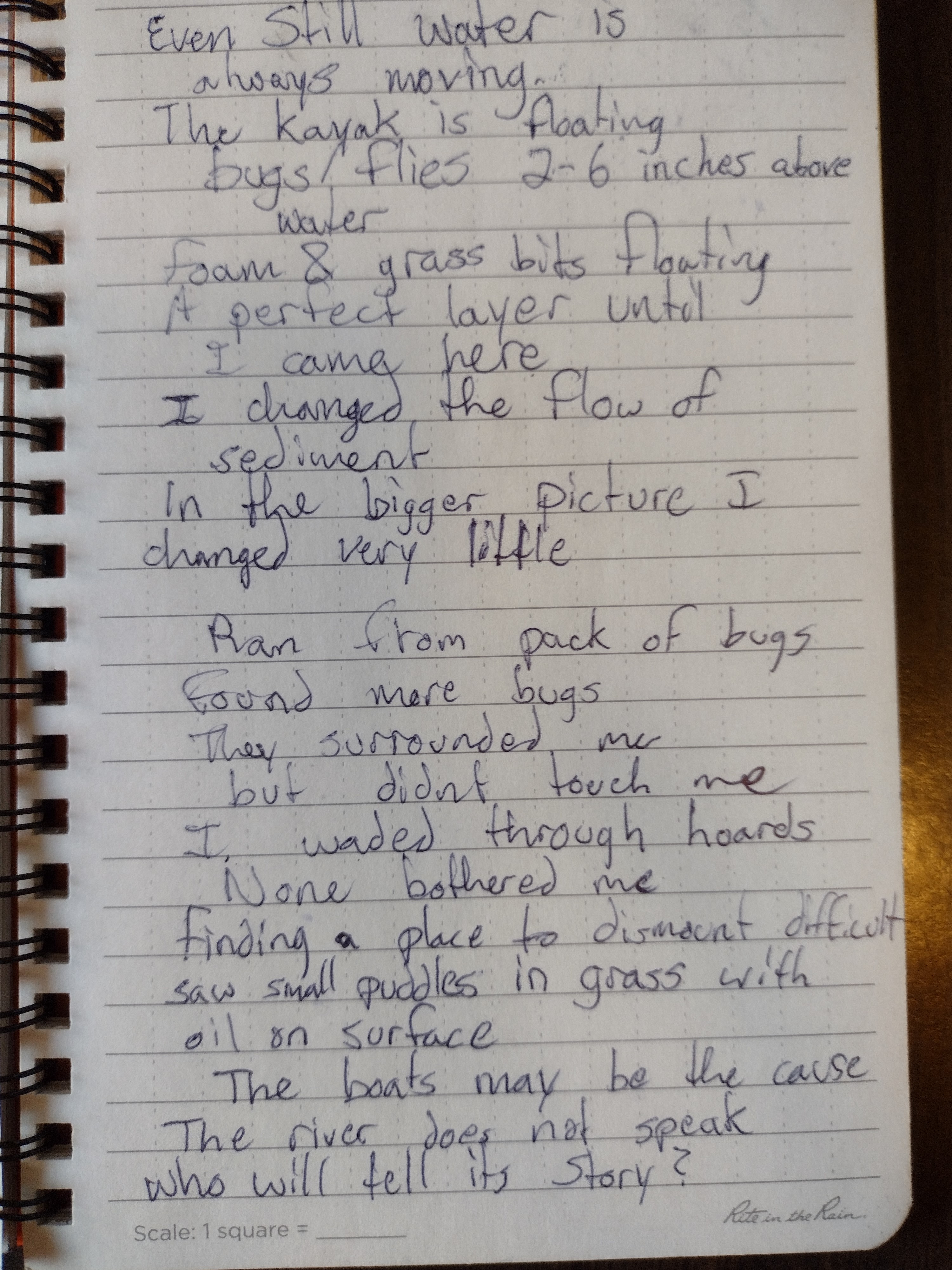 My map drawing skills did not increase, but I was able to throw together references to the encounters I had with bugs, the things I learned about the water, or things that surprised me about the environment I came so far to find, and to call home.