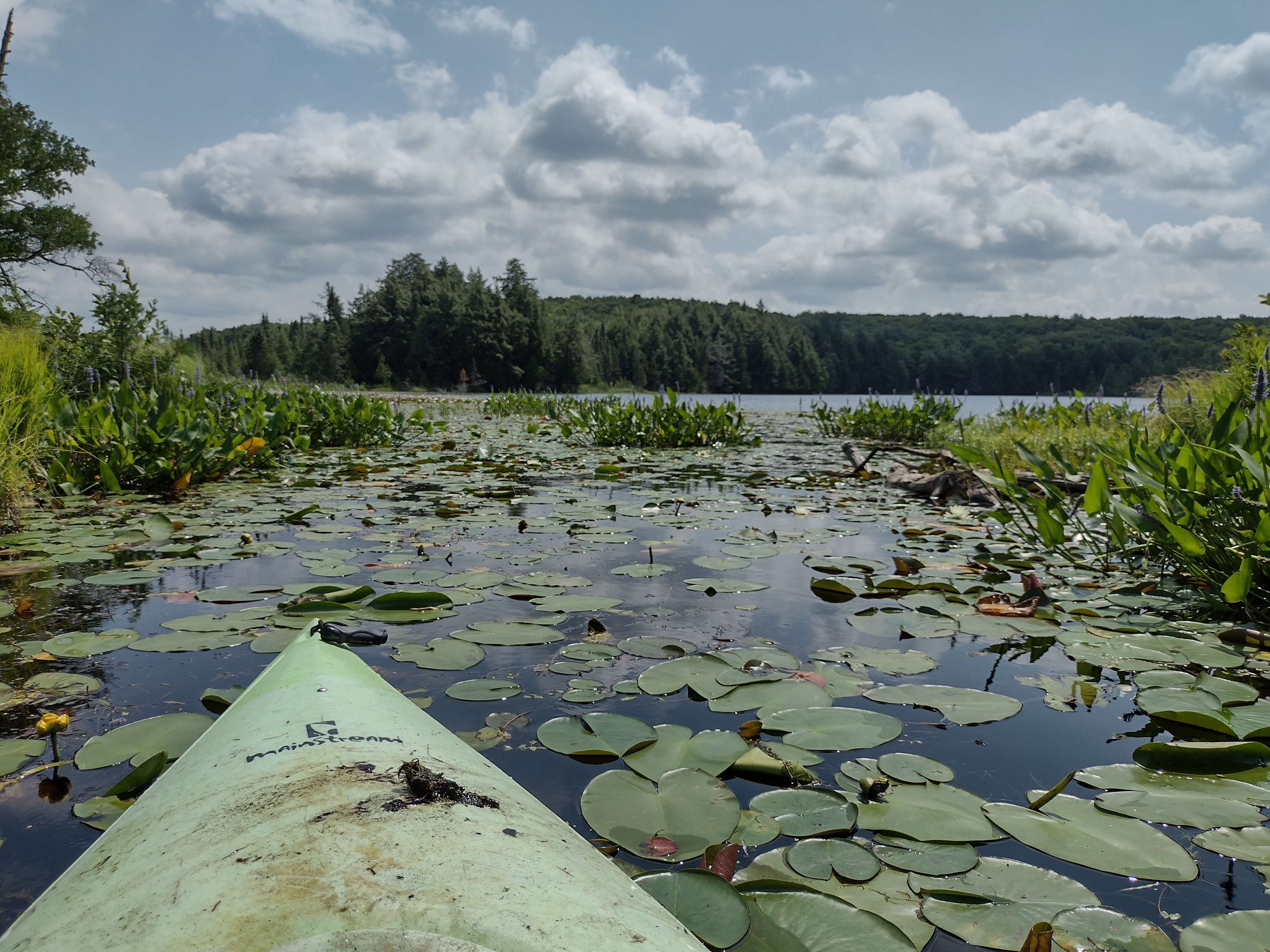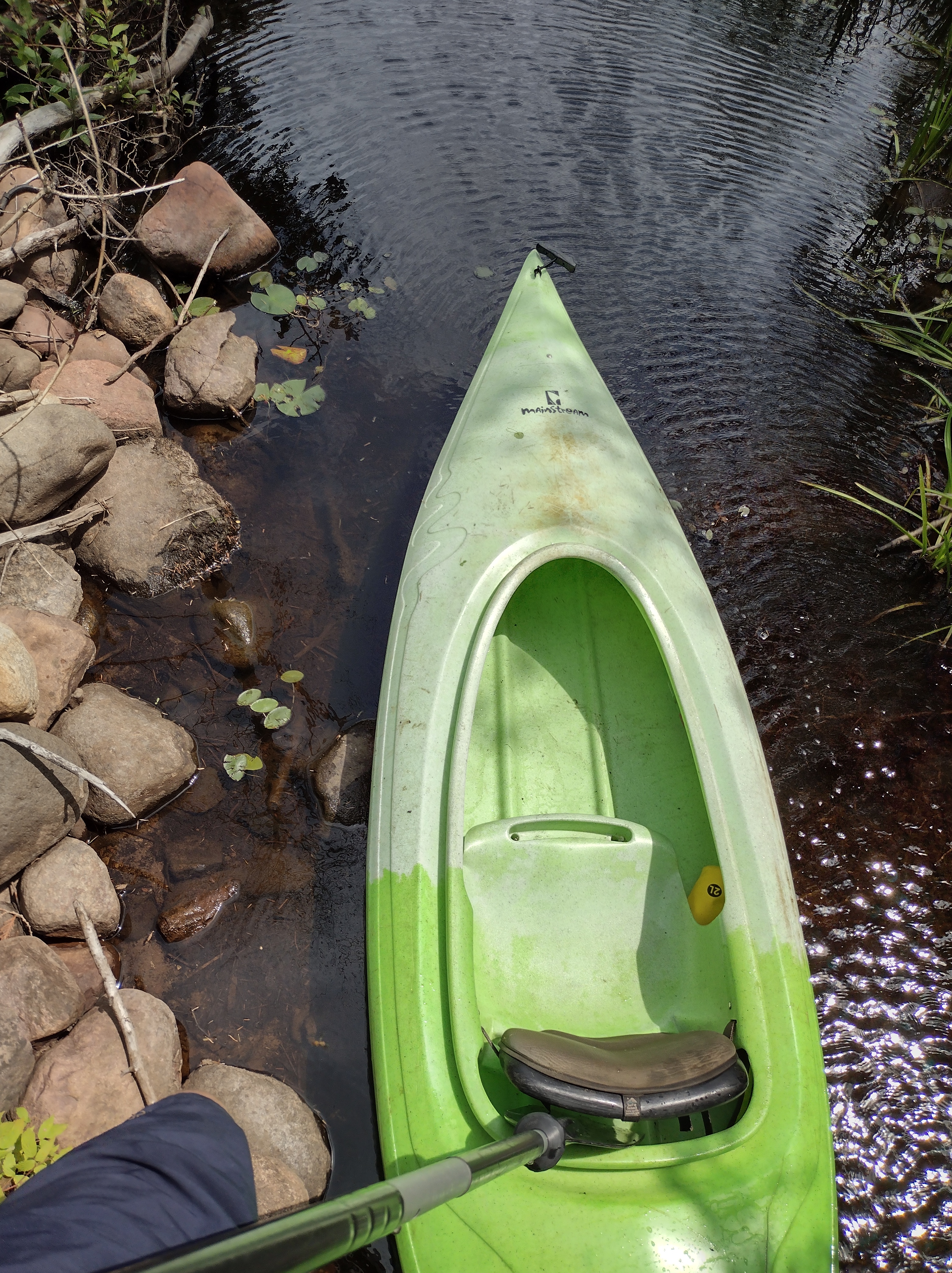 The 3rd trip was rather short, because the lake I was on was small and took only 30 minutes to cross. The channel of water I wanted to go down was blocked by rocks, sticks and debris, within a culvert. It was 80 or more degrees Fahrenheit. I did start bringing my camera, and so I got some good pictures.