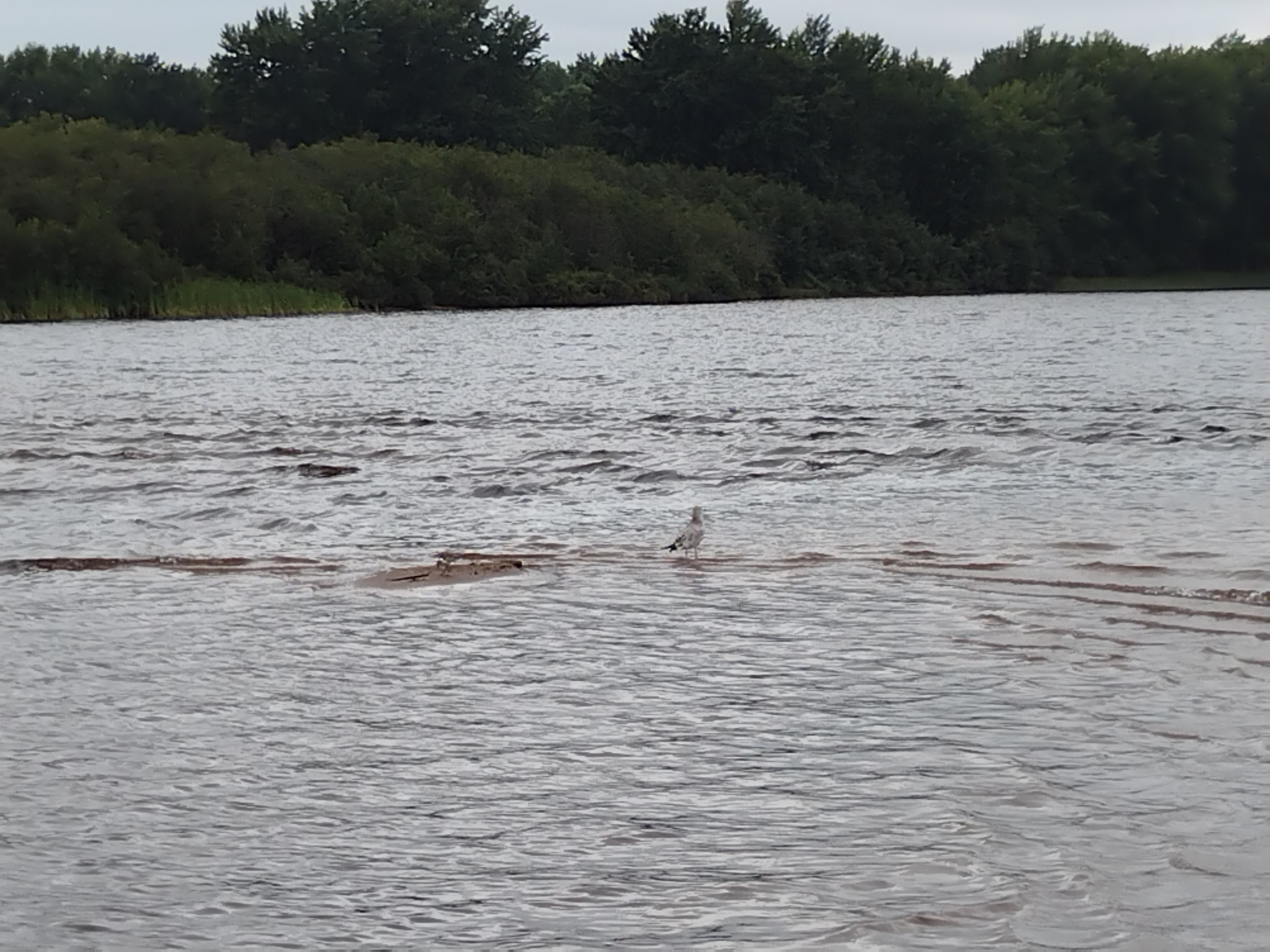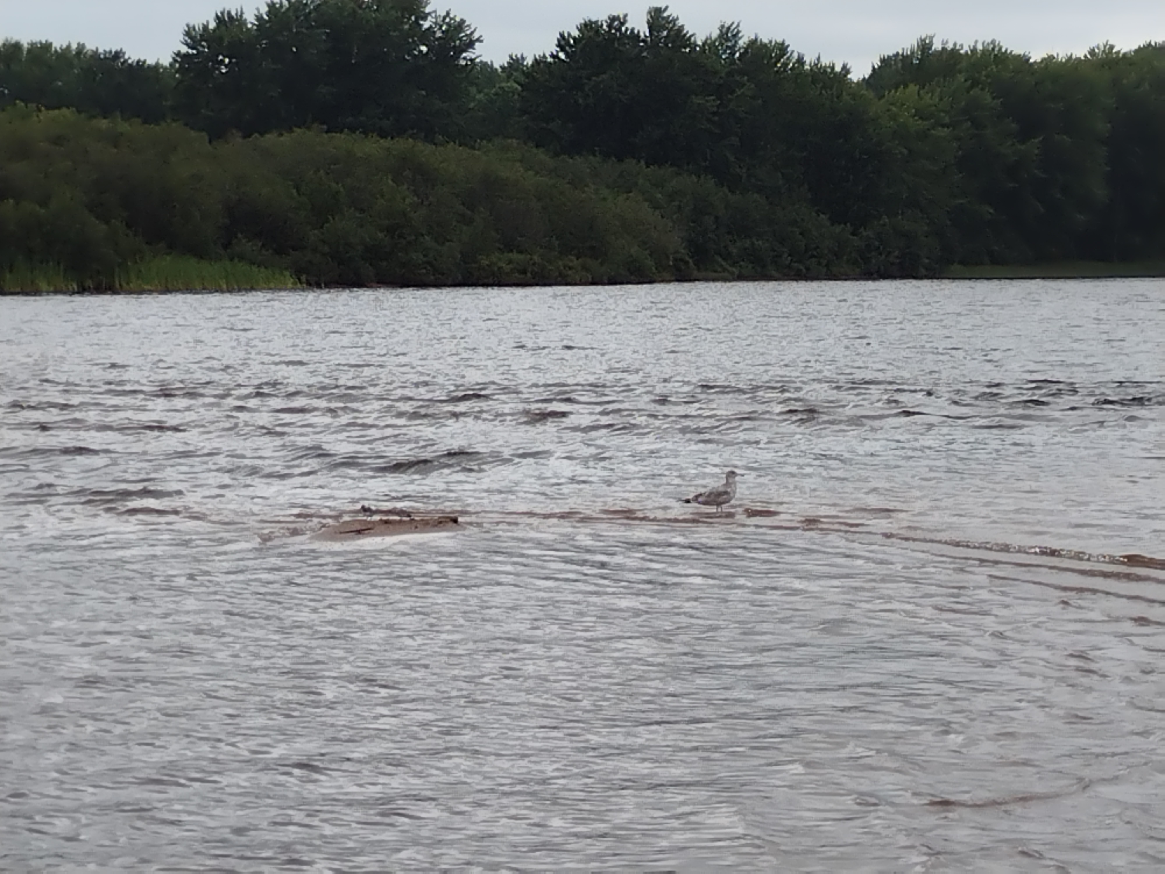 I searched the map in my area for places that have lakes with channels, and I found Otter River, which I traveled down for over an hour to find Otter Lake, and a very peculiar effect of waves going two directions at once. It would be my 6th trip.