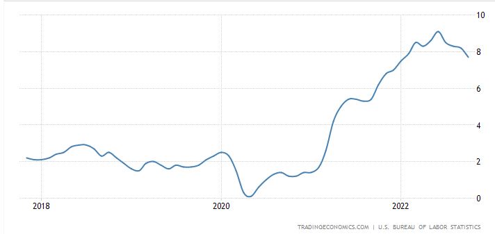 Chart 2: US Inflation Rates 2018-Present (Nov. 2022).