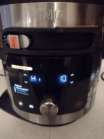 Figure #4: Picture of a Ninja Air Fryer from the front, with slide in the closed-left position, with a category of settings called “Pressure.”