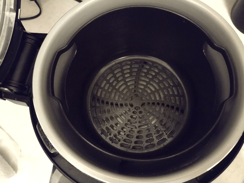 The air fryer affords me heating and cooking of food. I must be cooking a lot of one thing to use this product, but it is unclear how much is too much. There is a pot within the device, and there is an insert that fits into the pot, which allows air to go around and underneath it.